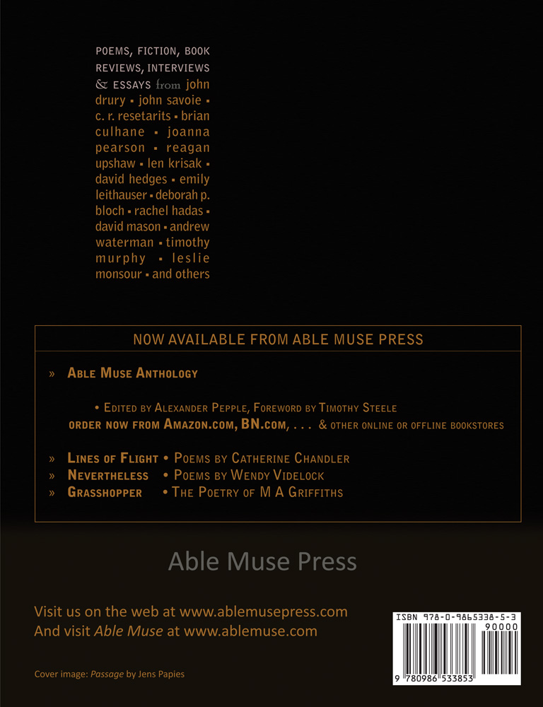POETRY — Reagan Upshaw, John Drury, Joanna Pearson, John Savoie, David Hedges, Brian Culhane, Rilke (Translated by Len Krisak), C. R. Resetarits, Emily Leithauser, Nicholas Friedman, Christine de Pisan (Translated by Maryann Corbett), Rory Waterman, Robert Cooperman, Mebane Robertson, Laura Heidy-Halberstein.